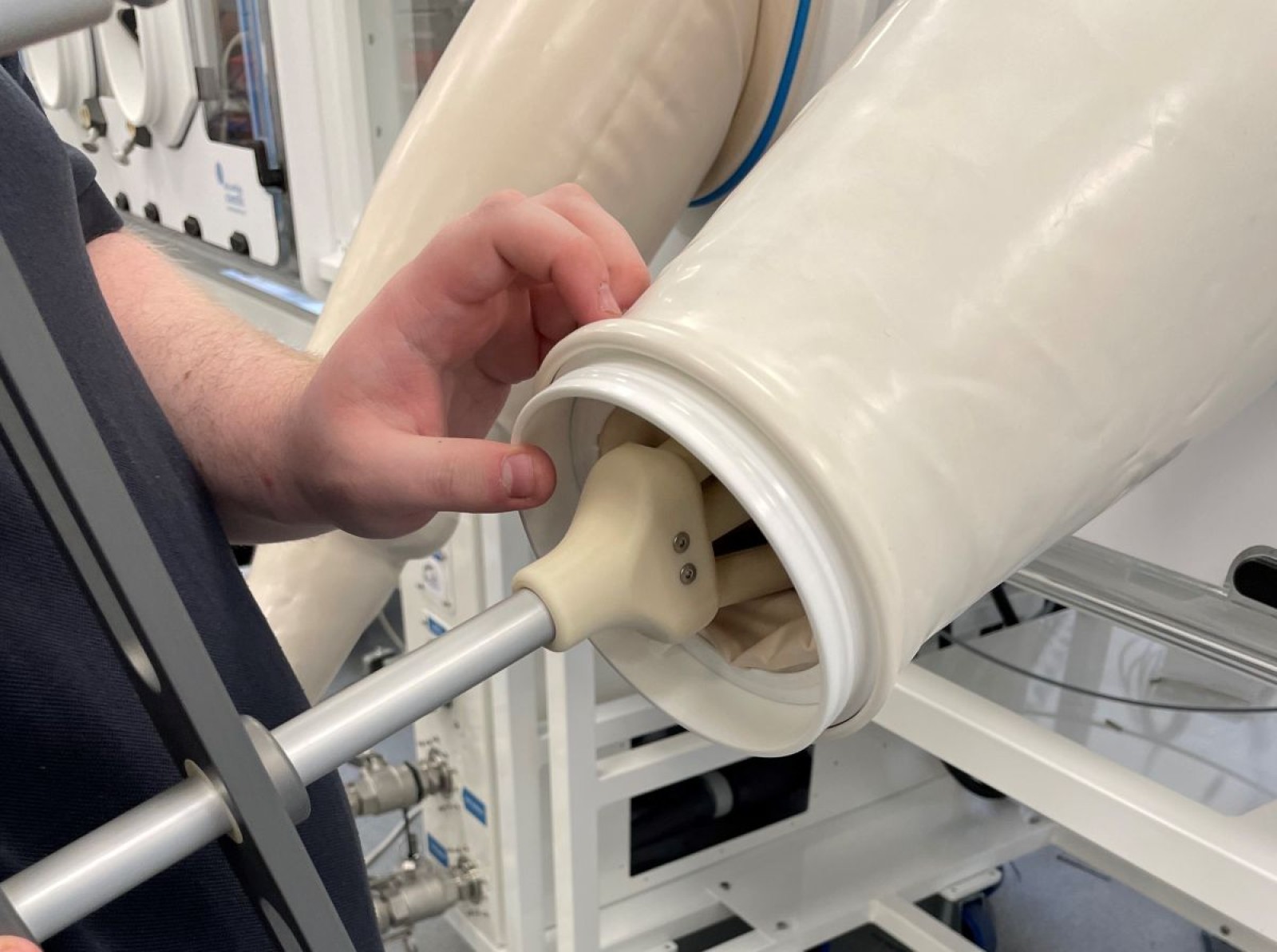 Glove extenders are used during VHP sterilisation to allow the fingers of the gauntlets to be separated during the cycle to prevent any occlusions, ensuring the hydrogen peroxide makes contact with all areas.