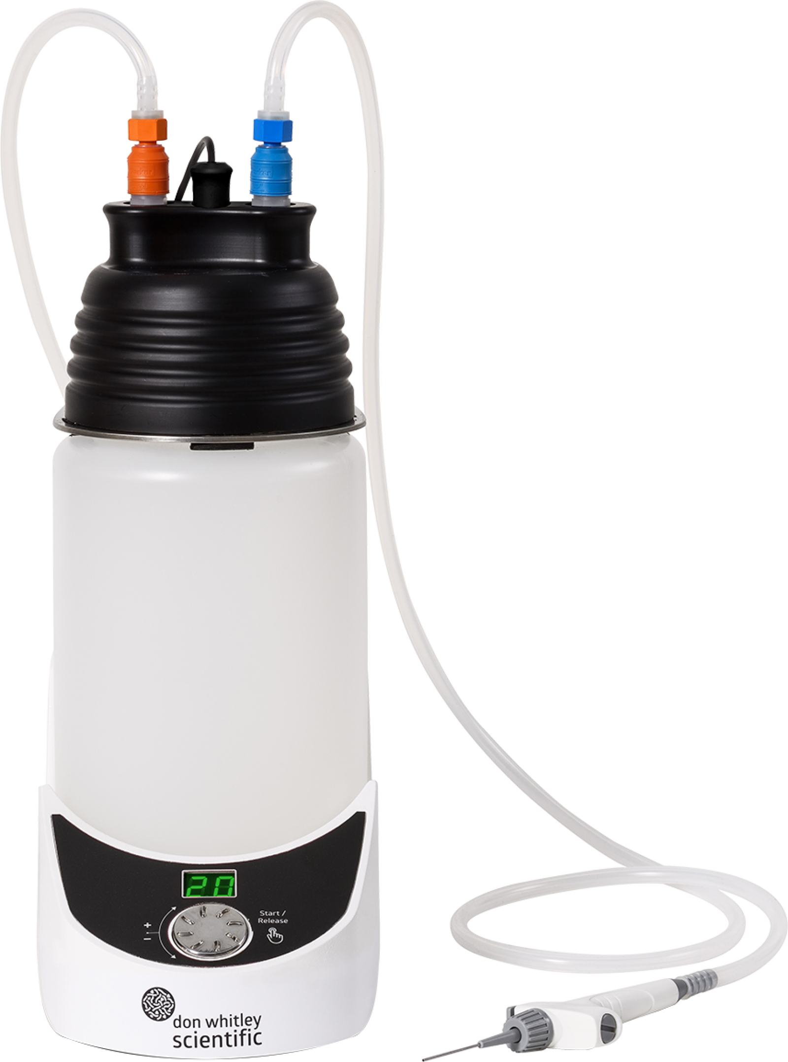The AsPROvac laboratory vacuum system is ideal for use with a Whitley Hypoxystation (that has a vacuum take-off port fitted).