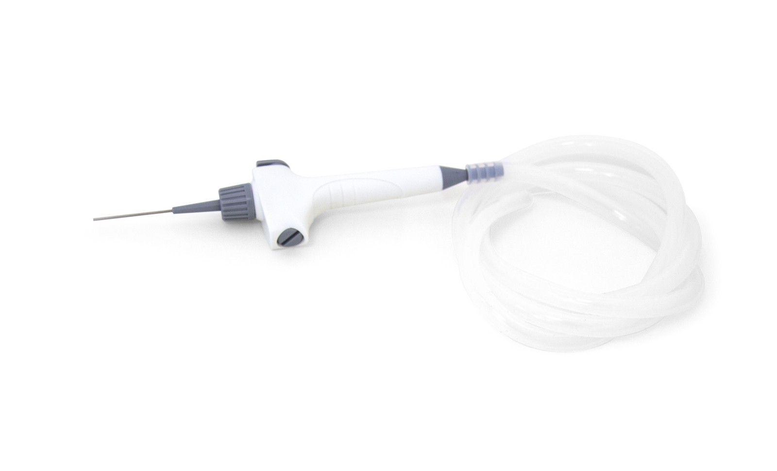 The hand-held aspirator comprises a reusable single tip and an adaptor for single-use tips along with a reusable 8-channel tip and an 8-channel adaptor for single-use tips.