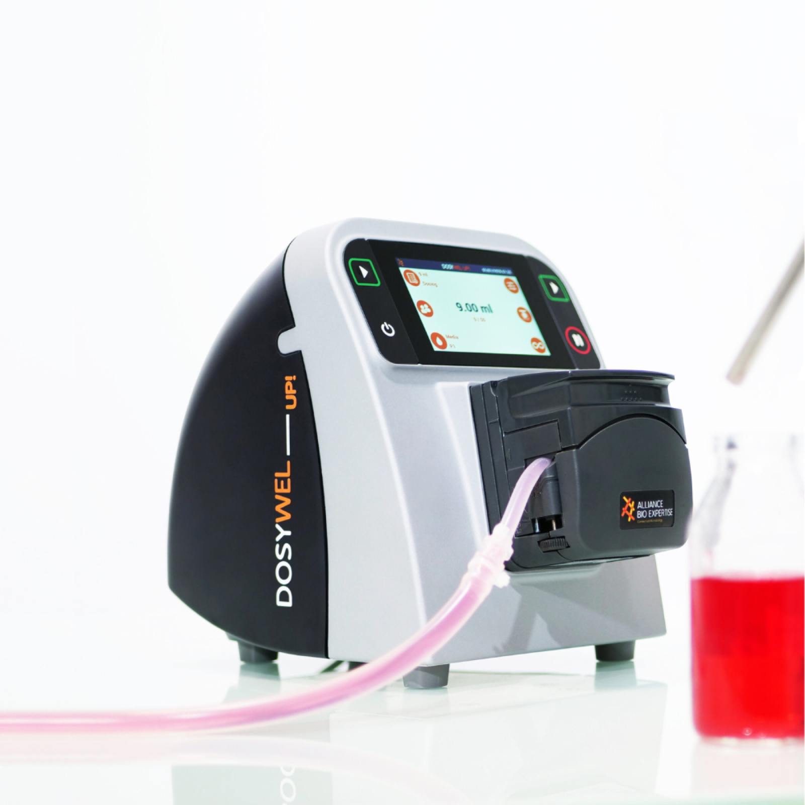 DOSYWEL UP! is a multi-functional, compact peristaltic pump that provides a quick and accurate way of filling vessels with liquids. This device can fill 9 ml with an accuracy of +/- 0.6 ml.