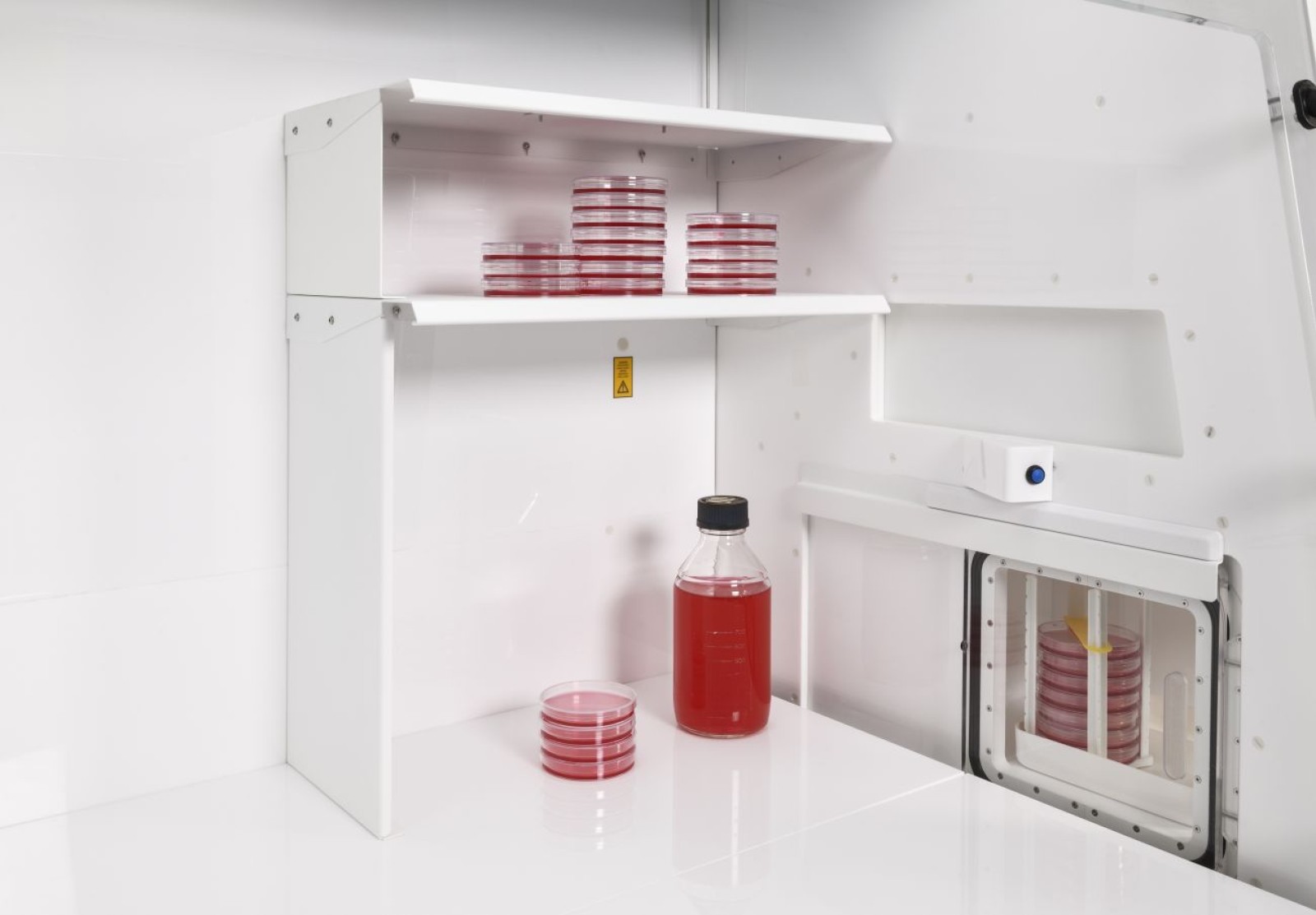 - The built-in, 17.5 litre airlock ensures samples can be transferred into the workstation atmosphere as soon as possible (takes only 2 minutes).