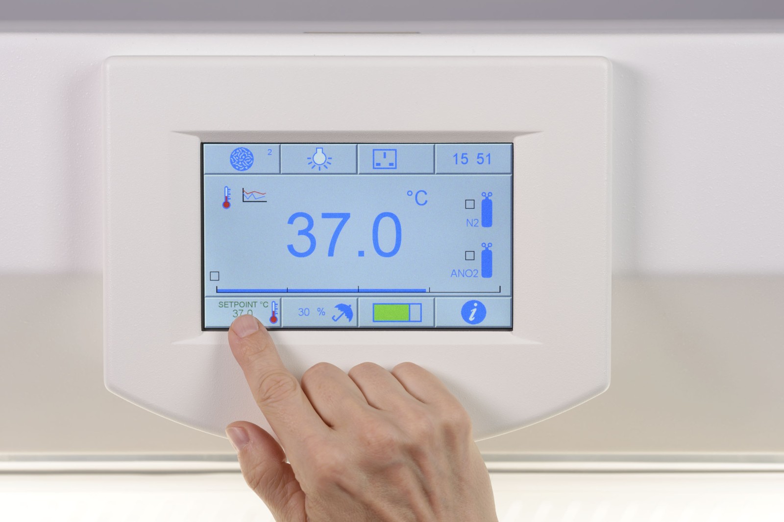 The Whitley A95 has a huge capacity of between 960 and 1120 x 90mm Petri dishes, depending upon the way you choose to configure your working and incubation areas. Incorporating the latest in touch screen technology, some features and benefits of the A95 are unique to DWS.