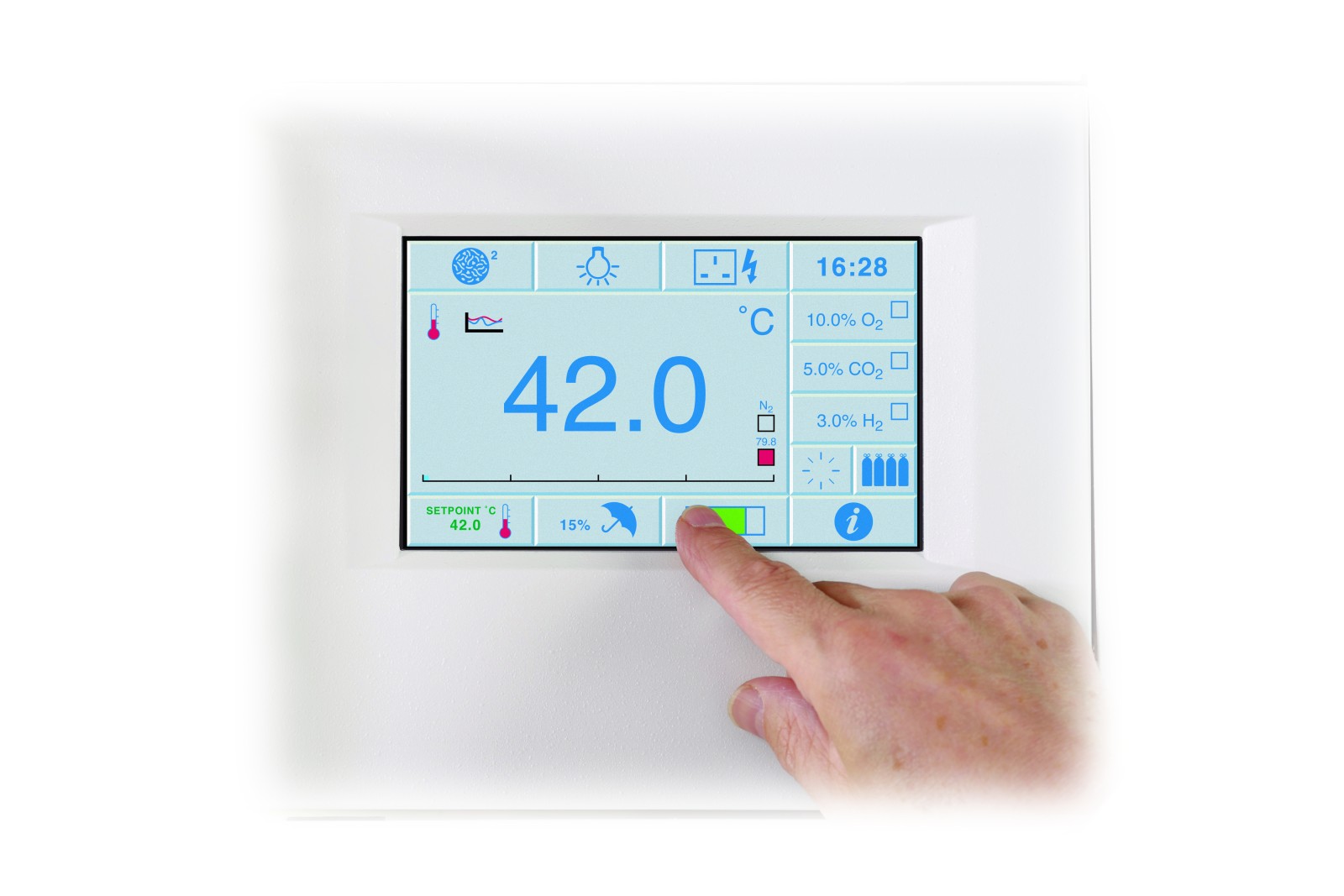 - Colour, touch-screen control panel for ease of use and for visual display of parameters such as temperature, humidity, and airlock cycle status.